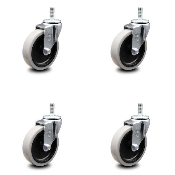 4 Inch Thermoplastic Rubber Wheel 12mm Threaded Stem Caster SCC, 4PK