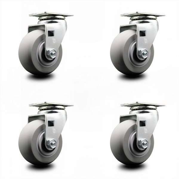4 Inch Thermoplastic Rubber Wheel Swivel Caster Set with Roller Bearings SCC