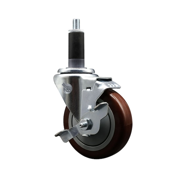4'' Maroon Poly Swivel 1-1/8'' Expanding Stem Caster with Brake