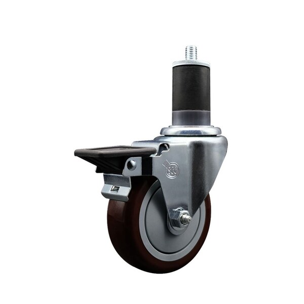 4'' Maroon Poly Swivel 1-5/8'' Expanding Stem Caster with Brake
