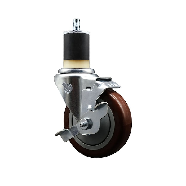 4'' Maroon Poly Swivel 1-7/8'' Expanding Stem Caster with Brake