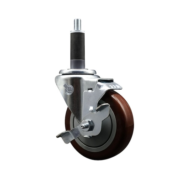 4'' Maroon Poly Swivel 1'' Expanding Stem Caster with Brake