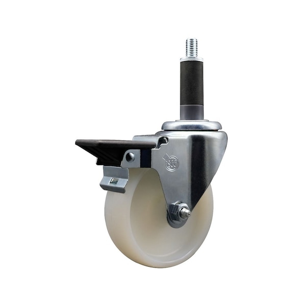 Listing is for one 1 Service Caster Series #20 1'' expanding stem swivel caster with a 4'' diameter by 1-1/4'' wide nylon wheel and a posi locking brake capable of supporting 300 lbs./caster. When searching for a reliable and durable solution to your caster needs, look no further than the Service Caster Series 20 expanding stem nylon wheel casters. The Series #20 features an innovative expanding stem that can easily adapt to the inside diameter of the opening, allowing for a secure fit in round or square tubes. Simply tighten the topmost knurled nut to compress the rubber for a snug fit. For added security, further compress the rubber with a wrench via the nut under the swivel raceway. Finely crafted with a bright zinc plated finish, heat-treated ball bearing raceway, and a nylon wheel, this versatile caster is ideal for work tables, shop projects, or any equipment with round or square tube legs. Service Caster is unsurpassed in quality, reliability, and excellent customer service. Count on us to move you forward.
