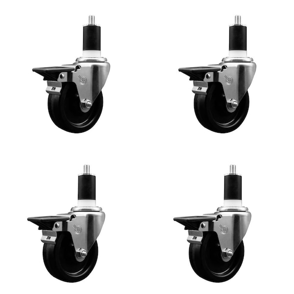 4'' Phenolic Swivel 1-1/2'' Expanding Stem Caster Set with Brake, 4PK