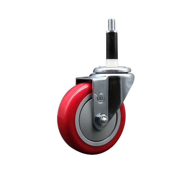 4'' Red Poly Wheel Swivel 7/8'' Expanding Stem Caster