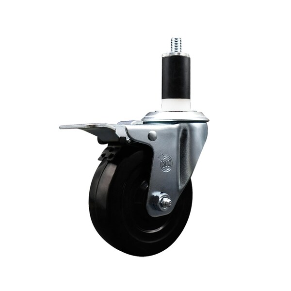 Listing is for one 1 Service Caster Series #20 1-3/8'' expanding stem swivel caster with a 4'' diameter by 1-1/4'' wide black soft rubber wheel and a total locking brake capable of supporting 200 lbs./caster. When searching for a reliable and durable solution to your caster needs, look no further than the Service Caster Series 20 expanding stem soft rubber wheel casters. The Series #20 features an innovative expanding stem that can easily adapt to the inside diameter of the opening, allowing for a secure fit in round or square tubes. Simply tighten the topmost knurled nut to compress the rubber for a snug fit. For added security, further compress the rubber with a wrench via the nut under the swivel raceway. Finely crafted with a bright zinc plated finish, heat-treated ball bearing raceway, and a soft rubber wheel, this versatile caster is ideal for work tables, shop projects, or any equipment with round or square tube legs. Service Caster is unsurpassed in quality, reliability, and excellent customer service. Count on us to move you forward.