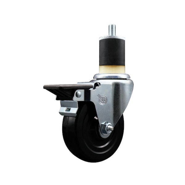 Listing is for one 1 Service Caster Series #20 1-7/8'' expanding stem swivel caster with a 4'' diameter by 1-1/4'' wide black soft rubber wheel and a posi locking brake capable of supporting 200 lbs./caster. When searching for a reliable and durable solution to your caster needs, look no further than the Service Caster Series 20 expanding stem soft rubber wheel casters. The Series #20 features an innovative expanding stem that can easily adapt to the inside diameter of the opening, allowing for a secure fit in round or square tubes. Simply tighten the topmost knurled nut to compress the rubber for a snug fit. For added security, further compress the rubber with a wrench via the nut under the swivel raceway. Finely crafted with a bright zinc plated finish, heat-treated ball bearing raceway, and a soft rubber wheel, this versatile caster is ideal for work tables, shop projects, or any equipment with round or square tube legs. Service Caster is unsurpassed in quality, reliability, and excellent customer service. Count on us to move you forward.