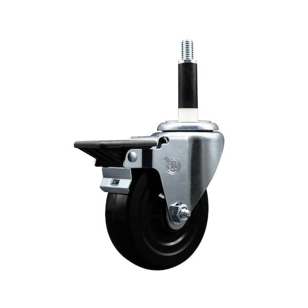 Listing is for one 1 Service Caster Series #20 7/8'' expanding stem swivel caster with a 4'' diameter by 1-1/4'' wide black soft rubber wheel and a posi locking brake capable of supporting 200 lbs./caster. When searching for a reliable and durable solution to your caster needs, look no further than the Service Caster Series 20 expanding stem soft rubber wheel casters. The Series #20 features an innovative expanding stem that can easily adapt to the inside diameter of the opening, allowing for a secure fit in round or square tubes. Simply tighten the topmost knurled nut to compress the rubber for a snug fit. For added security, further compress the rubber with a wrench via the nut under the swivel raceway. Finely crafted with a bright zinc plated finish, heat-treated ball bearing raceway, and a soft rubber wheel, this versatile caster is ideal for work tables, shop projects, or any equipment with round or square tube legs. Service Caster is unsurpassed in quality, reliability, and excellent customer service. Count on us to move you forward.