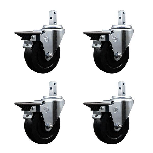 4'' Soft Rubber Wheel Swivel 3/4'' Square Stem Caster Set with Brake, 4PK