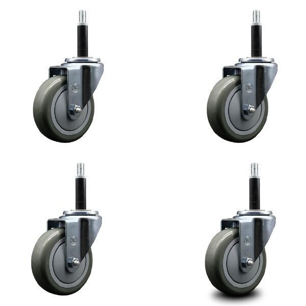 4'' SS Gray Poly Wheel Swivel 3/4'' Expanding Stem Caster Set, 4PK