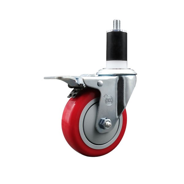 4'' SS Red Poly Swivel 1-1/2'' Expanding Stem Caster Total Lock Brake