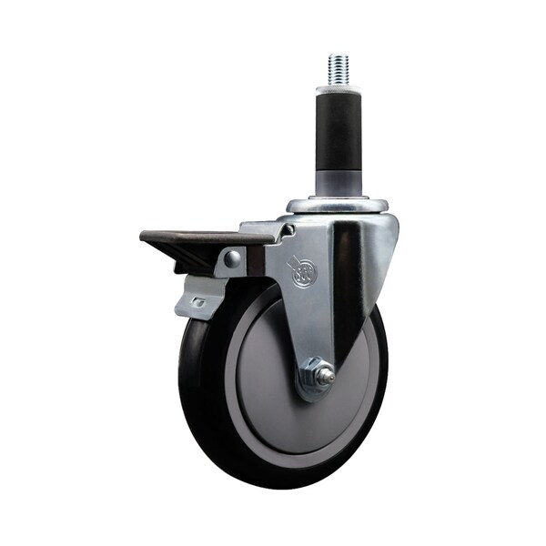 5'' Black Poly Swivel 1-1/8'' Expanding Stem Caster with Brake