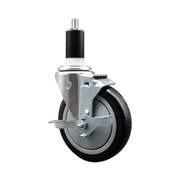 5'' Black Poly Swivel 1-3/8'' Expanding Stem Caster with Brake