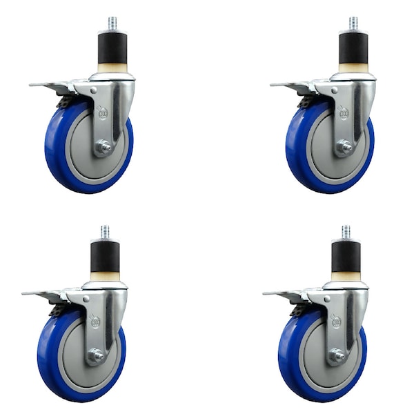 5'' Blue Poly Swivel 1-7/8'' Expanding Stem Caster Set Total Lock Brake, 4PK