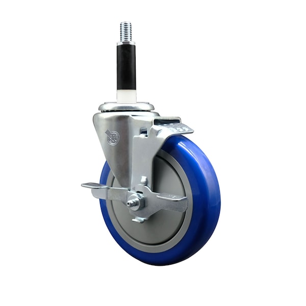 5'' Blue Poly Swivel 7/8'' Expanding Stem Caster with Brake