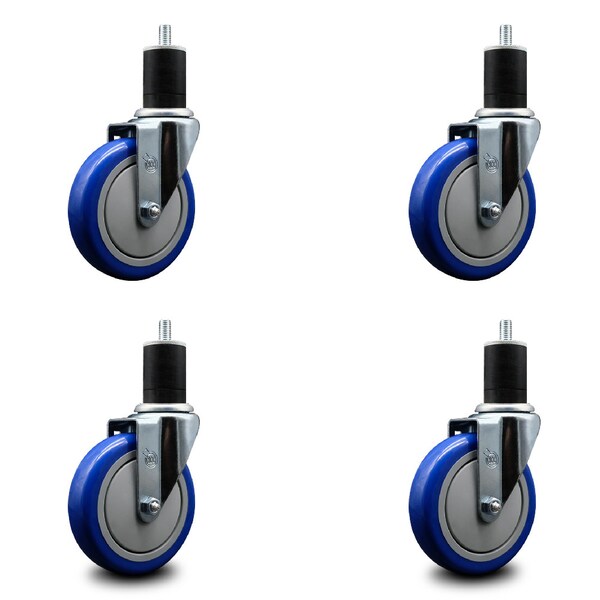 5'' Blue Poly Wheel Swivel 1-3/4'' Expanding Stem Caster Set, 4PK