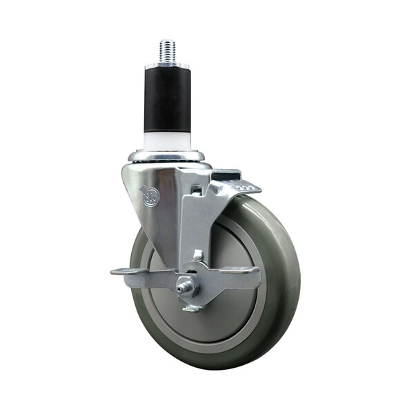 5'' Gray Poly Swivel 1-1/2'' Expanding Stem Caster with Brake