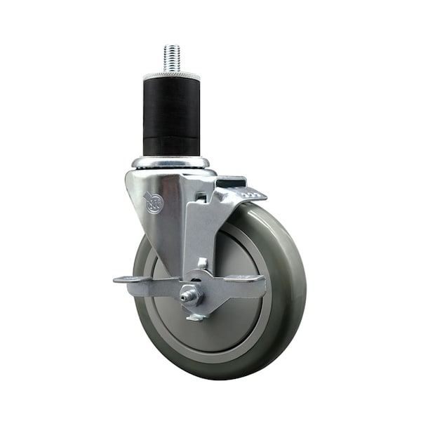 5'' Gray Poly Swivel 1-3/4'' Expanding Stem Caster with Brake
