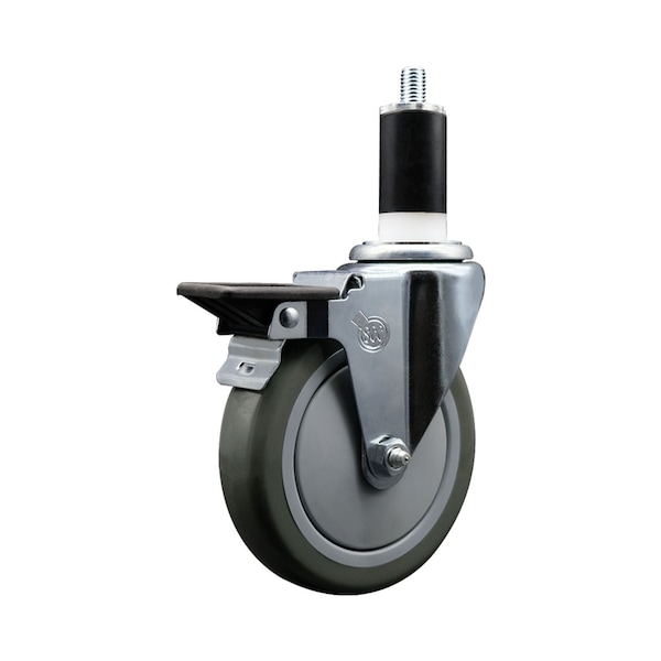 5'' Gray Poly Swivel 1-3/8'' Expanding Stem Caster with Brake