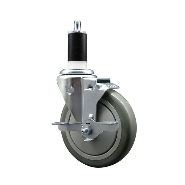 5'' Gray Poly Swivel 1-3/8'' Expanding Stem Caster with Brake