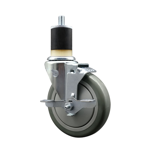 5'' Gray Poly Swivel 1-7/8'' Expanding Stem Caster with Brake