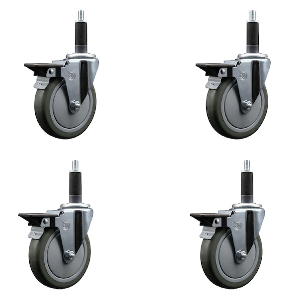 5'' Gray Poly Swivel 1'' Expanding Stem Caster Set with Brake, 4PK
