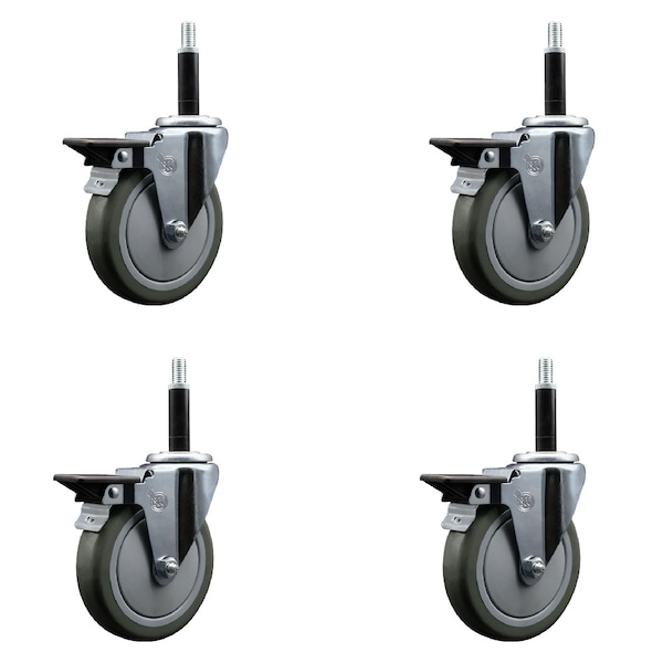 5'' Gray Poly Swivel 3/4'' Expanding Stem Caster Set with Brake, 4PK