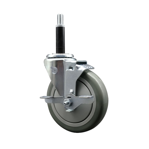 5'' Gray Poly Swivel 3/4'' Expanding Stem Caster with Brake