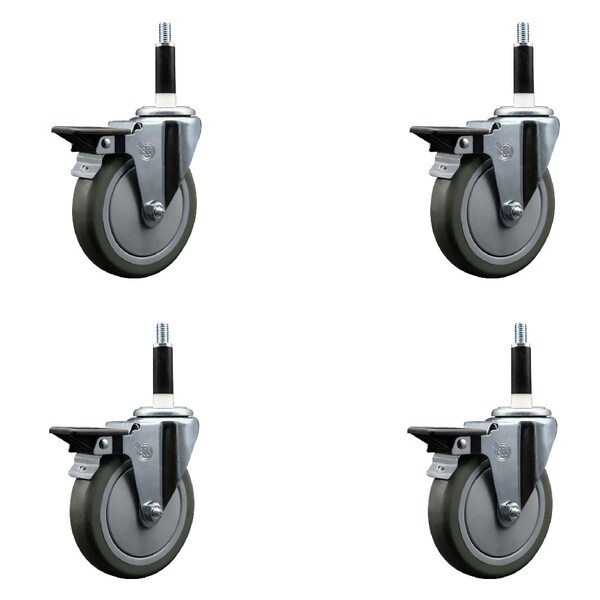 5'' Gray Poly Swivel 7/8'' Expanding Stem Caster Set with Brake, 4PK