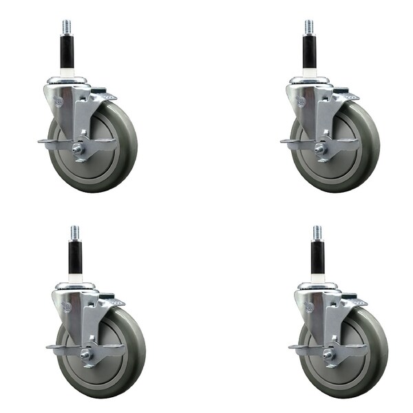 5'' Gray Poly Swivel 7/8'' Expanding Stem Caster Set with Brake, 4PK