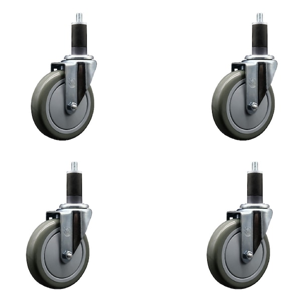5'' Gray Poly Wheel Swivel 1-1/4'' Expanding Stem Caster Set, 4PK