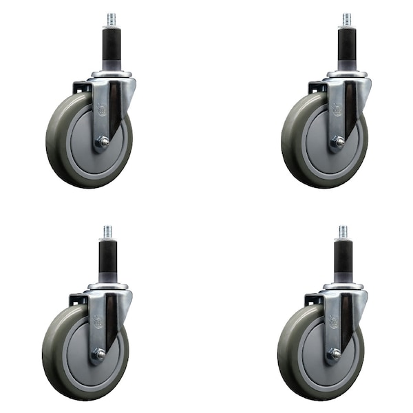 5'' Gray Poly Wheel Swivel 1-1/8'' Expanding Stem Caster Set, 4PK