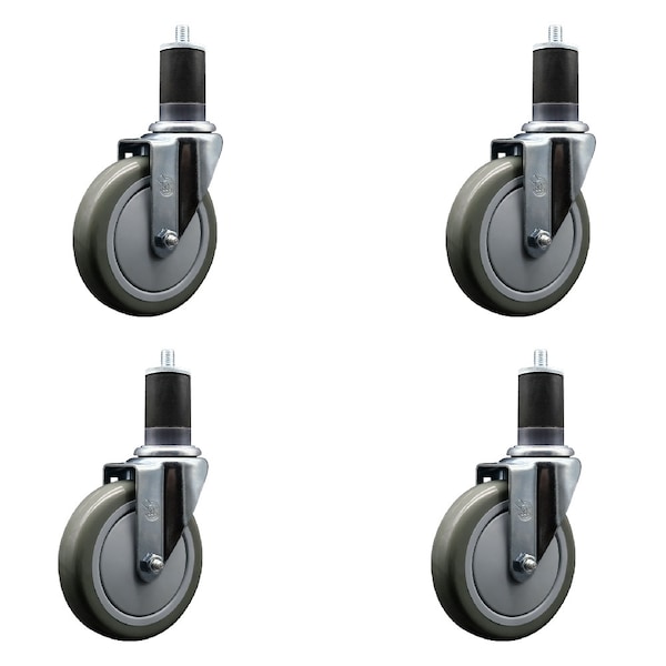 5'' Gray Poly Wheel Swivel 1-5/8'' Expanding Stem Caster Set, 4PK