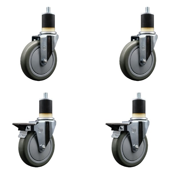 5'' Gray Poly Wheel Swivel 1-7/8'' Expanding Stem Caster Set 2 Brakes, 4PK