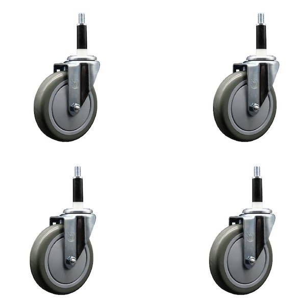 5'' Gray Poly Wheel Swivel 7/8'' Expanding Stem Caster Set, 4PK