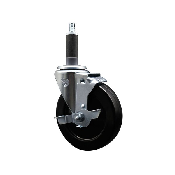 Listing is for one 1 Service Caster Series #20 1'' expanding stem swivel caster with a 5'' diameter by 1-1/4'' wide black hard rubber wheel and a top locking brake capable of supporting 300 lbs./caster. When searching for a reliable and durable solution to your caster needs, look no further than the Service Caster Series 20 expanding stem hard rubber wheel casters. The Series #20 features an innovative expanding stem that can easily adapt to the inside diameter of the opening, allowing for a secure fit in round or square tubes. Simply tighten the topmost knurled nut to compress the rubber for a snug fit. For added security, further compress the rubber with a wrench via the nut under the swivel raceway. Finely crafted with a bright zinc plated finish, heat-treated ball bearing raceway, and a hard rubber wheel, this versatile caster is ideal for work tables, shop projects, or any equipment with round or square tube legs. Service Caster is unsurpassed in quality, reliability, and excellent customer service. Count on us to move you forward.