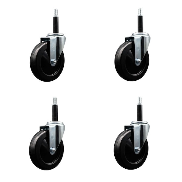Listing is for a set of four 4 Service Caster Series #20 3/4'' expanding stem swivel casters with 5'' diameter by 1-1/4'' wide black hard rubber wheels capable of supporting a total weight of 1,200 lbs. 300 lbs./caster.. When searching for a reliable and durable solution to your caster needs, look no further than the Service Caster Series 20 expanding stem hard rubber wheel casters. The Series #20 features an innovative expanding stem that can easily adapt to the inside diameter of the opening, allowing for a secure fit in round or square tubes. Simply tighten the topmost knurled nut to compress the rubber for a snug fit. For added security, further compress the rubber with a wrench via the nut under the swivel raceway. Finely crafted with a bright zinc plated finish, heat-treated ball bearing raceway, and a hard rubber wheel, this versatile caster is ideal for work tables, shop projects, or any equipment with round or square tube legs. Service Caster is unsurpassed in quality, reliability, and excellent customer service. Count on us to move you forward.