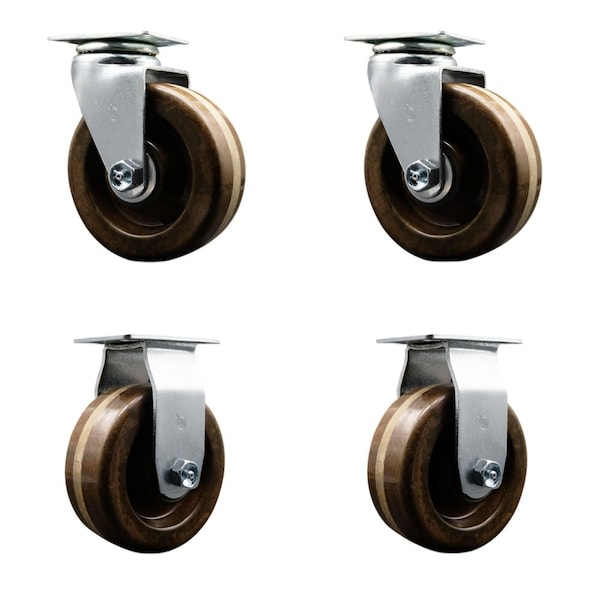 5'' High Temp Phenolic Caster Set with Bronze Bearings 2 Swivel 2 Rigid, 4PK