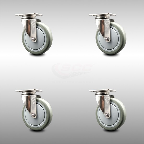 5 Inch 316SS Gray Polyurethane Wheel Swivel Top Plate Caster Set