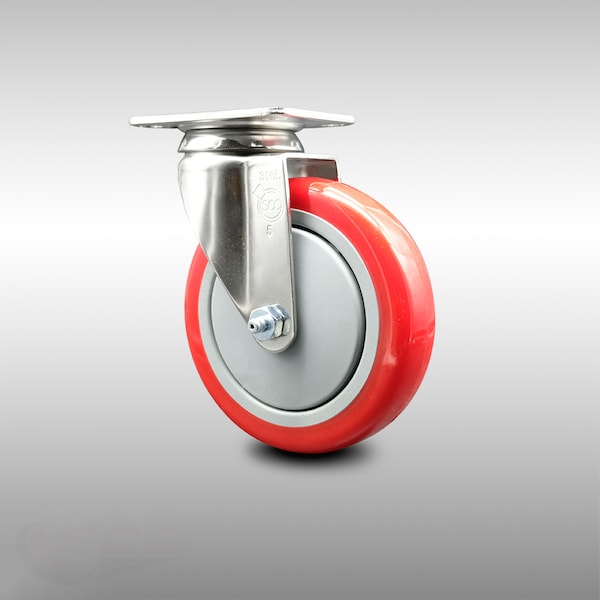5 Inch 316SS Red Polyurethane Wheel Swivel Top Plate Caster