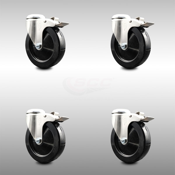 5 Inch 316SS Soft Rubber Swivel Bolt Hole Caster Set with Lock Brake SCC