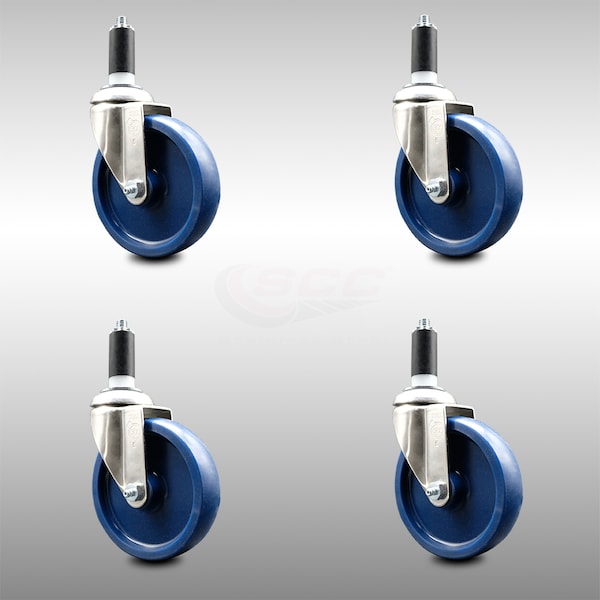 5 Inch 316SS Solid Polyurethane Swivel 1-1/4 Inch Expanding Stem Caster Set SCC