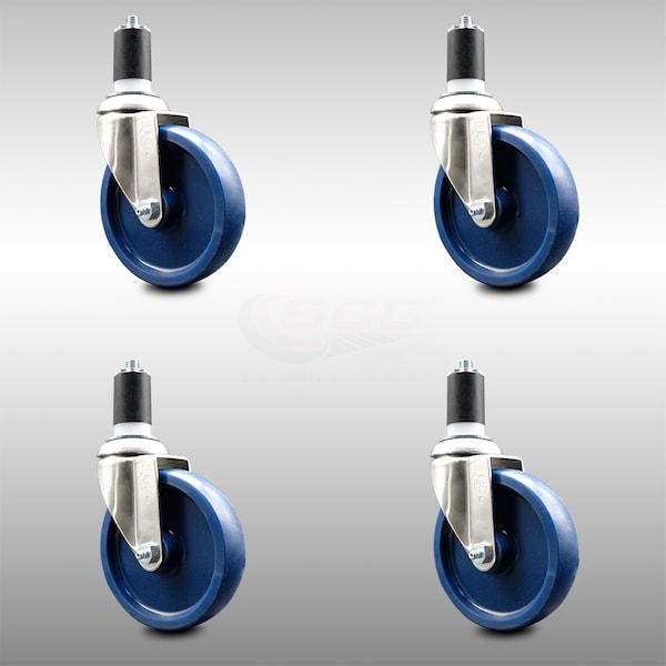 5 Inch 316SS Solid Polyurethane Swivel 1-5/8 Inch Expanding Stem Caster Set SCC