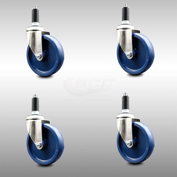 5 Inch 316SS Solid Polyurethane Swivel 1 Inch Expanding Stem Caster Set SCC