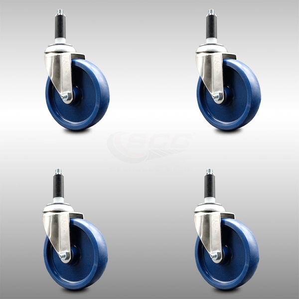 5 Inch 316SS Solid Polyurethane Swivel 7/8 Inch Expanding Stem Caster Set SCC