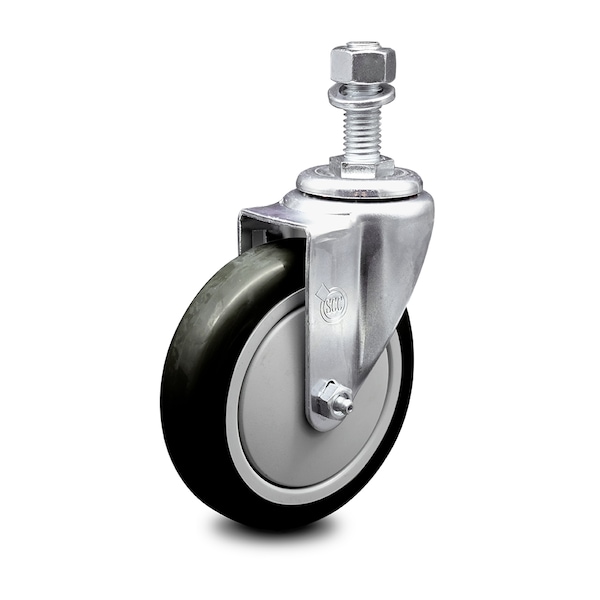 5 Inch Black Polyurethane Wheel Swivel 12mm Threaded Stem Caster SCC
