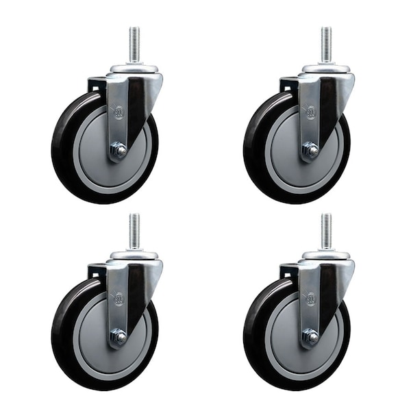 5 Inch Black Polyurethane Wheel Swivel 58 Inch Threaded Stem Caster Set Service Caster