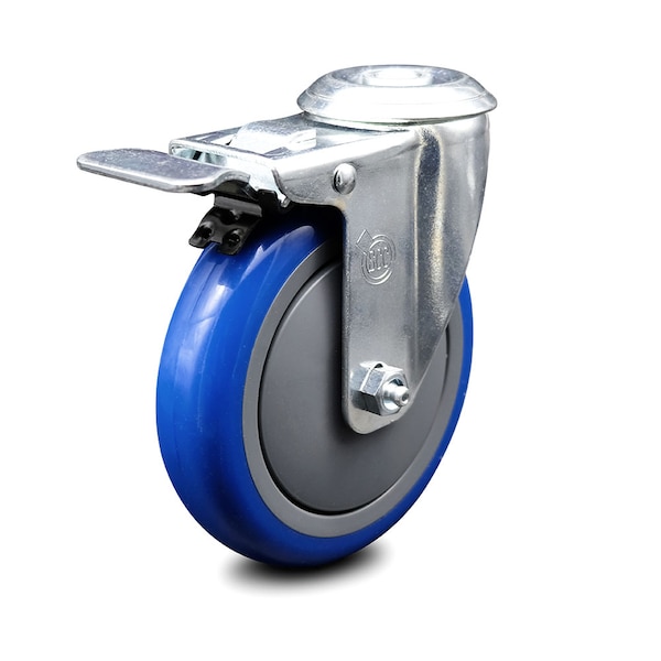 5 Inch Blue Polyurethane Wheel Bolt Hole Caster with Total Lock Brake SCC
