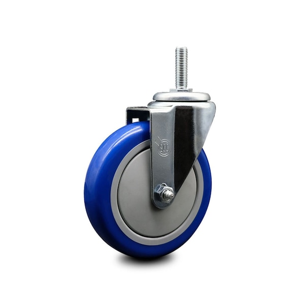 5 Inch Blue Polyurethane Wheel Swivel 34 Inch Threaded Stem Caster Service Caster