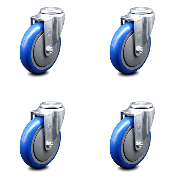 5 Inch Blue Polyurethane Wheel Swivel Bolt Hole Caster Set
